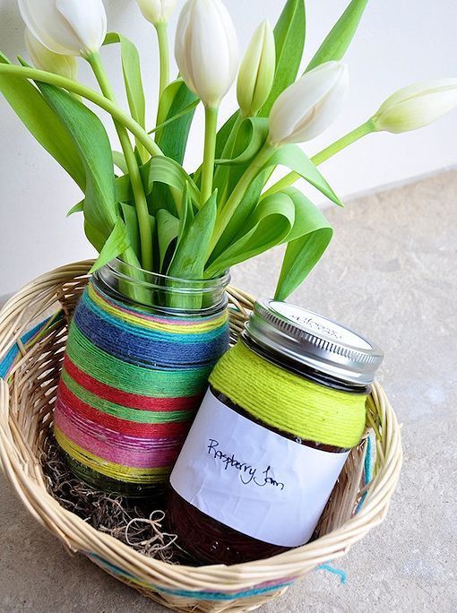 Además de los tarros de cristal que desees reciclar, sólo necesitas bobinas de hilo de diferentes colores, pegamento y, en el caso de que quieras identificar el contenido, unas cartulinas de papel. ¡Tus hijos también podrán hacerlo! Propónles esta idea de reciclaje como una actividad veraniega.
